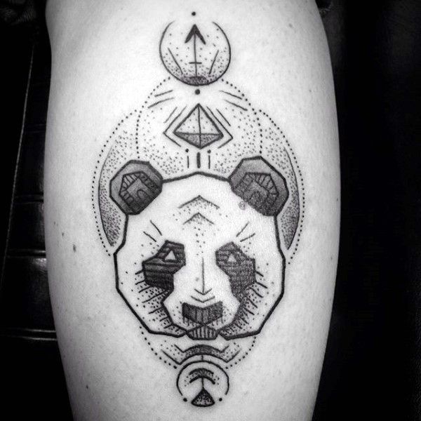 小腿点刺风格黑色的熊猫几何纹身图案