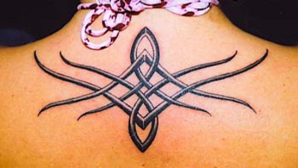 背部部落黑色交错线条纹身图案