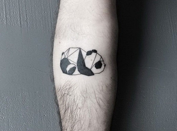 黑色几何线条可爱的熊猫纹身图案
