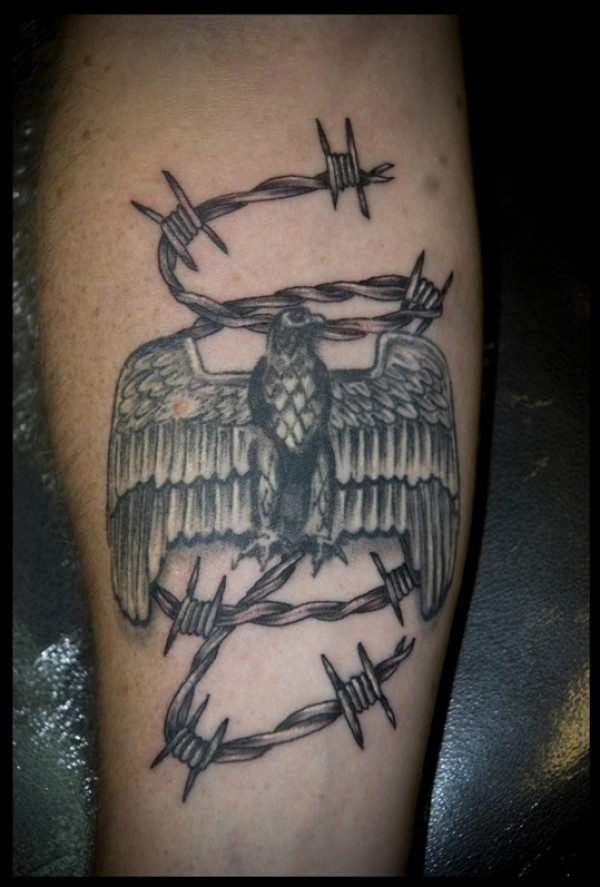 黑灰荆棘刺和鹰纹身图案