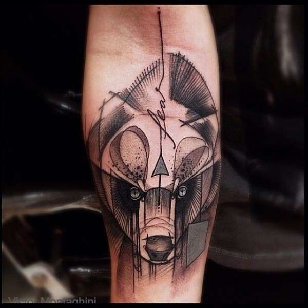手臂new school点刺滑稽熊字母纹身图案