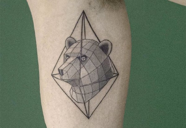 大臂菱形的熊头黑色几何纹身图案