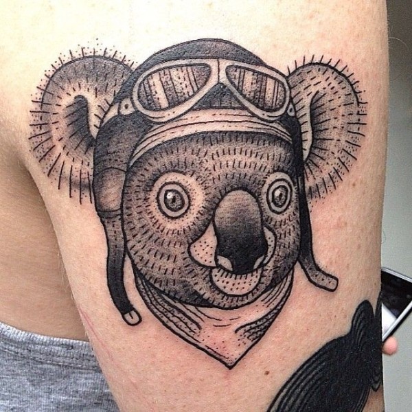 手臂滑稽的黑色飞行员熊纹身图案