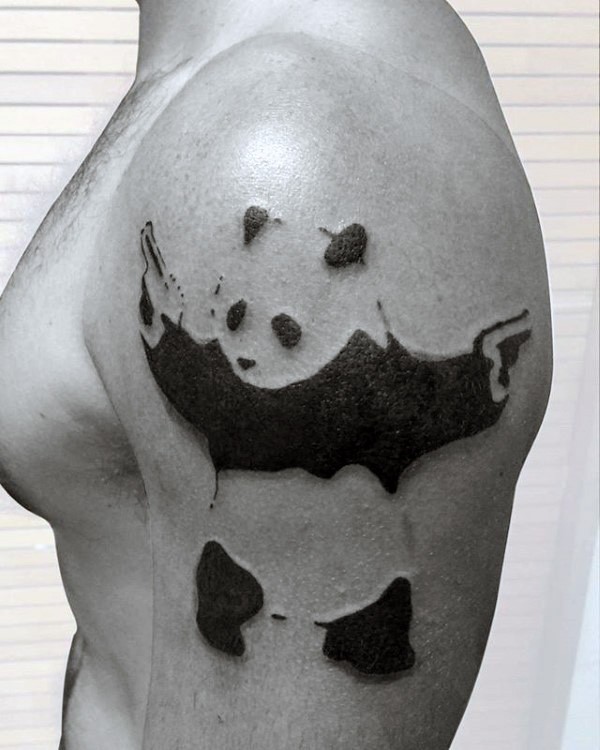 手臂黑色奇怪的熊猫与手枪纹身图案