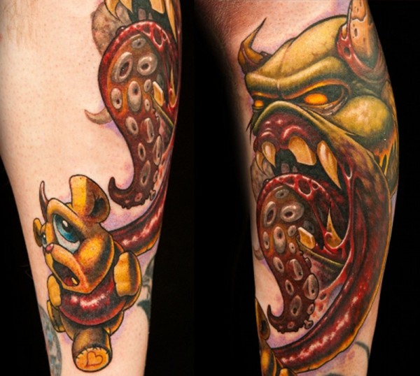 小腿可怕的怪物和玩具熊彩色纹身图案