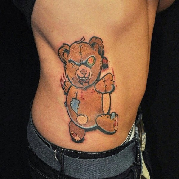 侧肋熊形状的巫毒娃娃彩色纹身图案