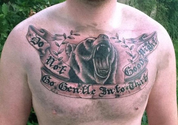 胸部一头咆哮的熊纹身图案