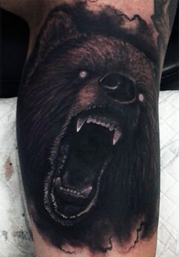 令人毛骨悚然的恶魔咆哮熊彩色纹身图案