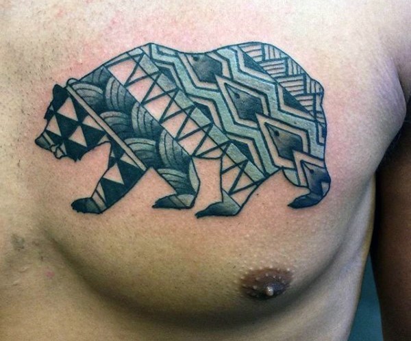 胸部五彩部落风格熊纹身图案