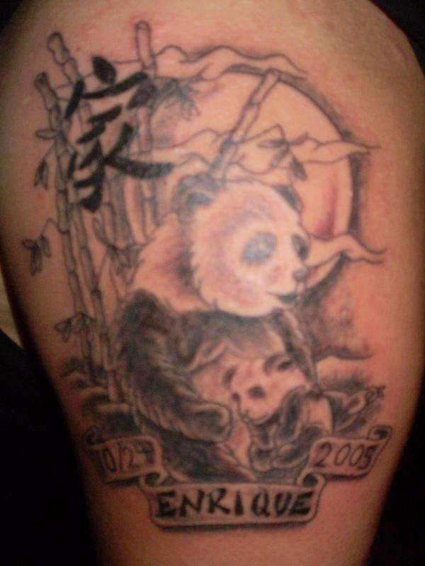 大臂熊猫竹子汉字英文纹身图案