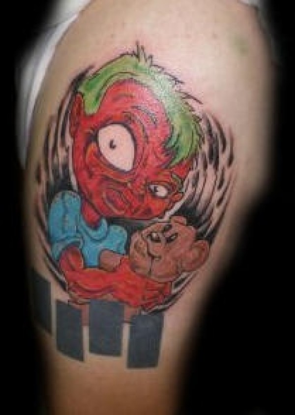 大臂疯狂的孩子与熊彩色纹身图案