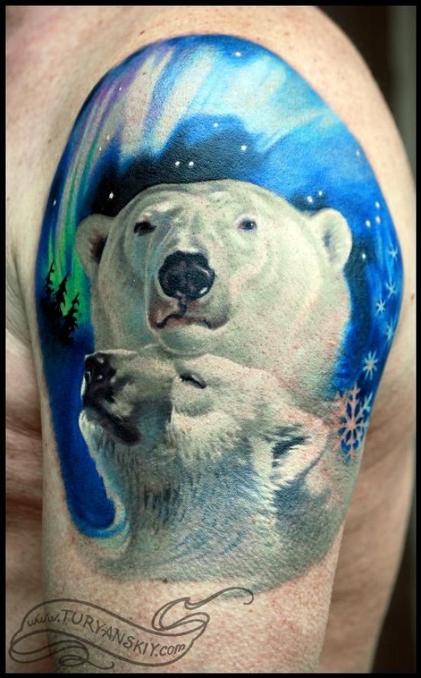 大臂美丽的写实北极熊彩绘纹身图案