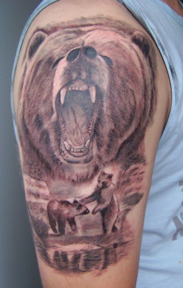 大臂漂亮的熊头纹身图案