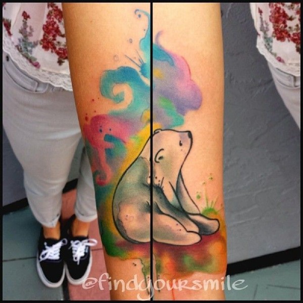 可爱的水彩北极熊手臂纹身图案