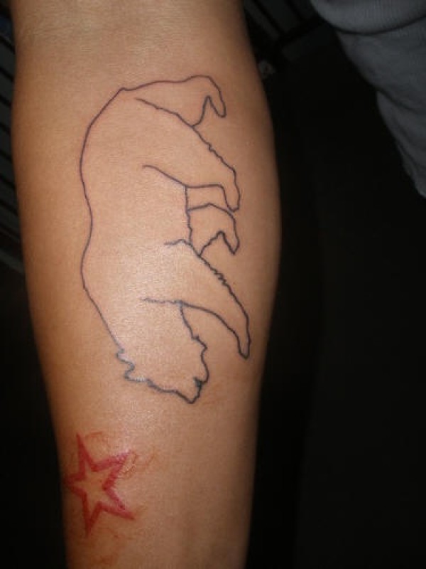 线条熊轮廓和星星纹身图案