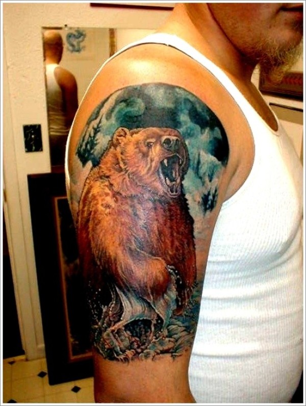 大臂彩色的熊在水中纹身图案