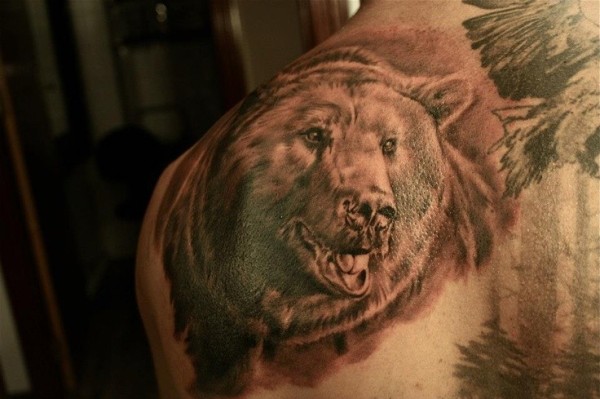 背部写实的熊纹身图案