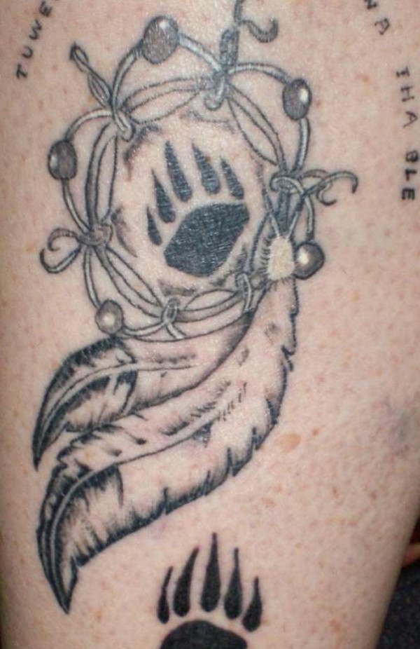 黑色的捕梦网与熊爪印纹身图案