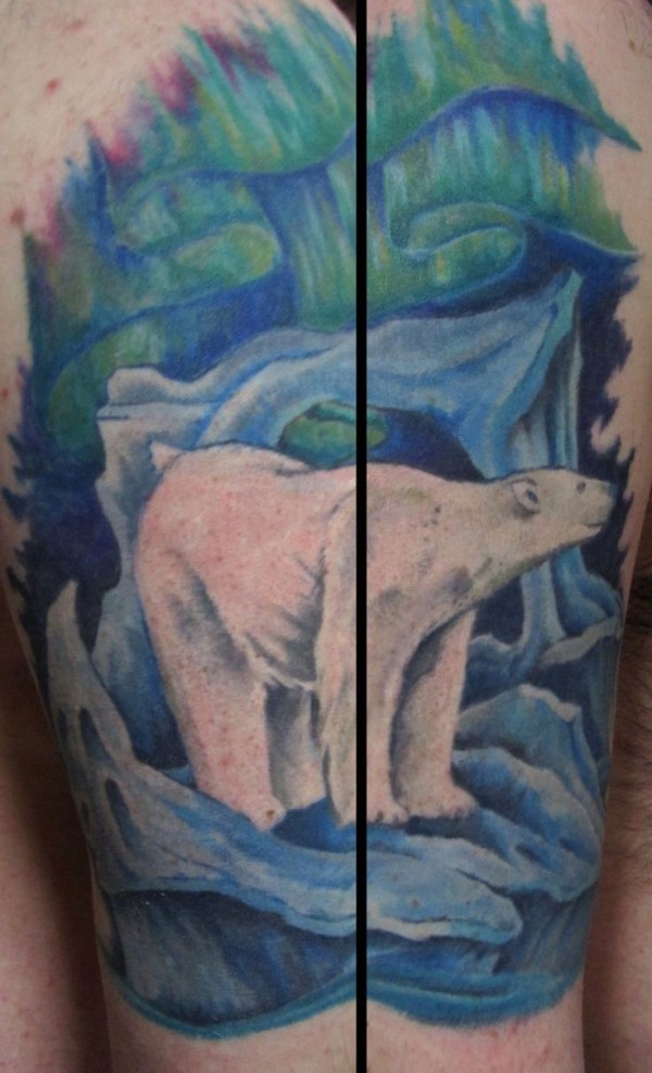 丰富多彩的北极熊和北极光纹身图案