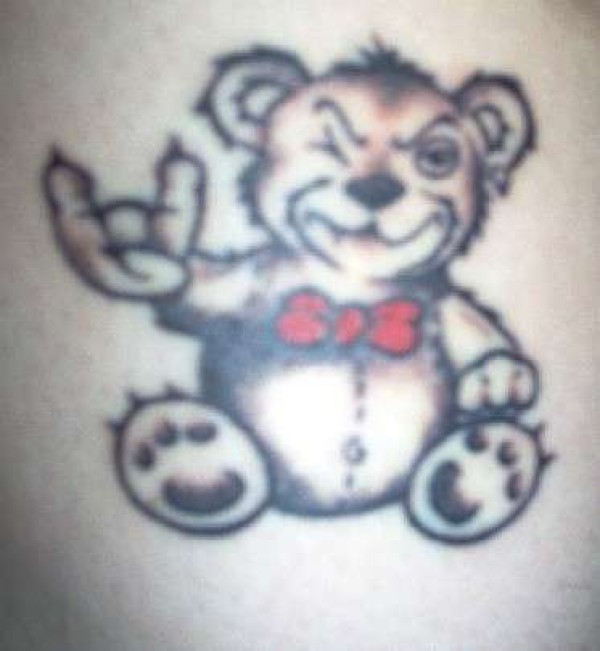 摇滚泰迪熊玩偶和蝴蝶结纹身图案