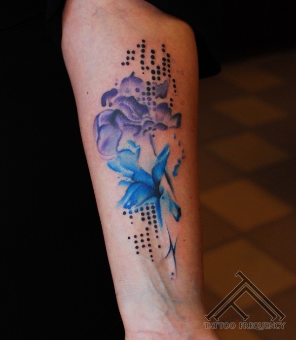 小臂new school彩色美丽的花朵纹身图案