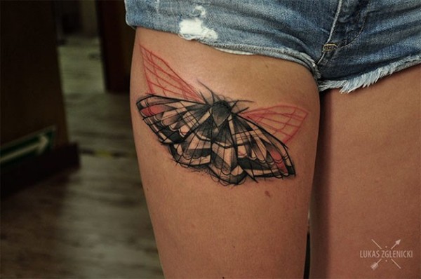 大腿有趣的彩色蝴蝶纹身图案