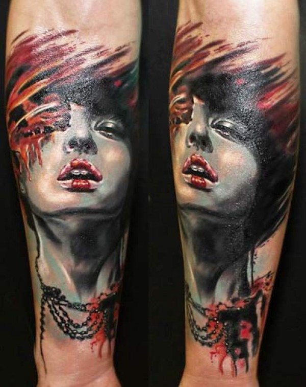 小臂美丽的女人肖像彩绘纹身图案