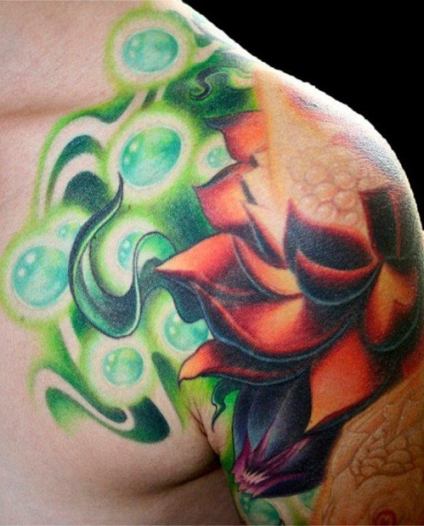 肩部美丽的彩色发光莲花纹身图案