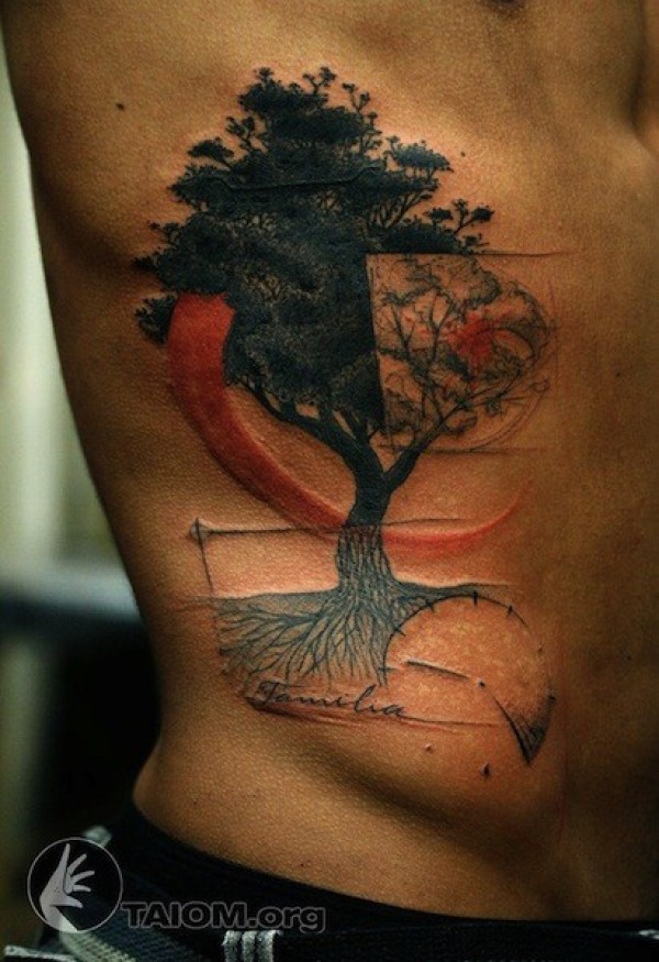 侧肋美丽的黑色树纹身图案