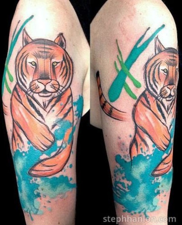 大臂美丽的彩色卡通老虎纹身图案