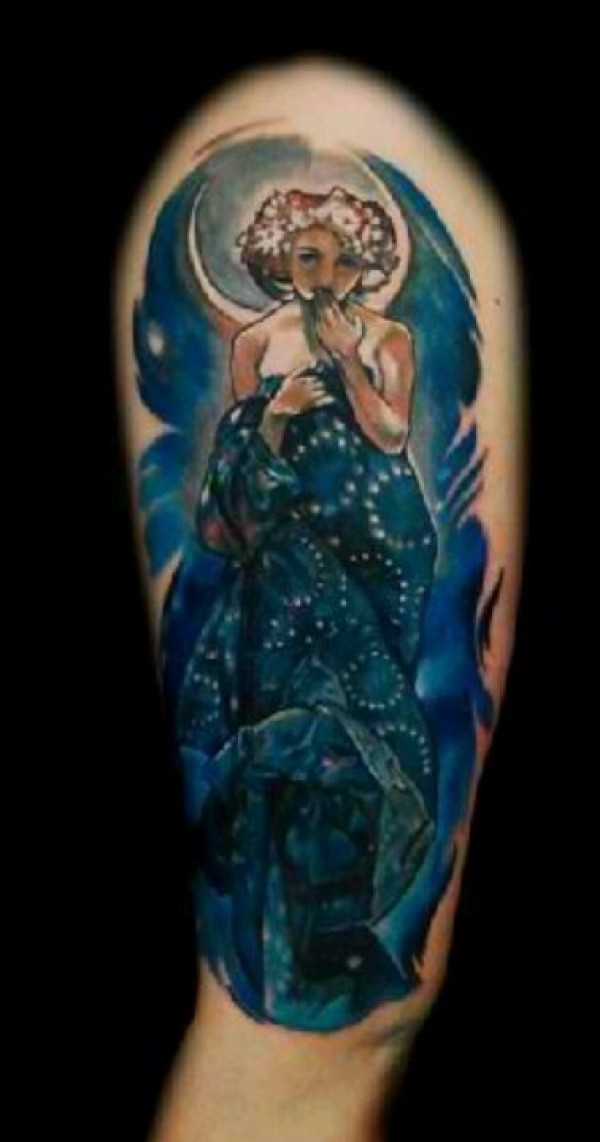 大臂彩色身美丽的女人晚礼服纹身图案