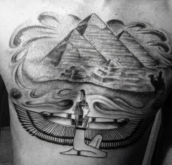 胸部美丽的古埃及主题金字塔人物纹身图案