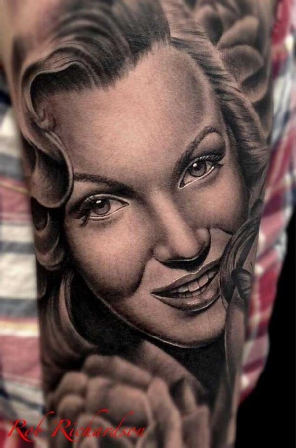 非常漂亮的彩色玛丽莲梦露肖像纹身图案