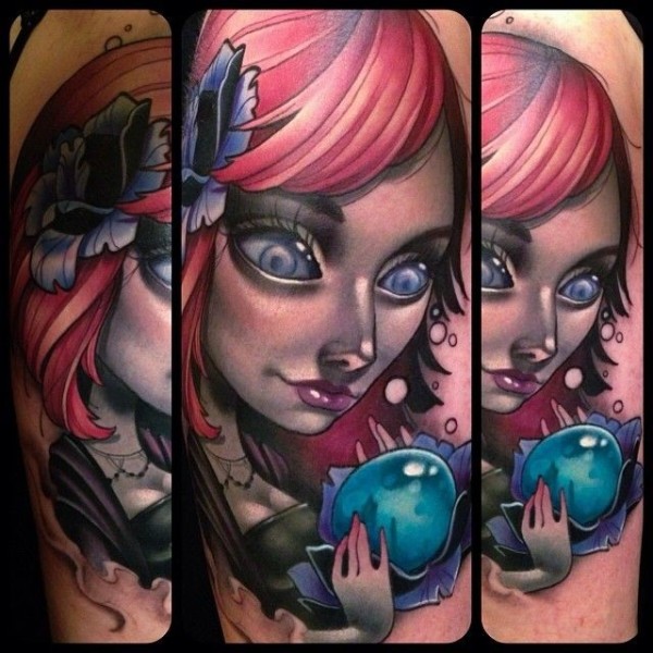好看的卡通女巫魔法球纹身图案
