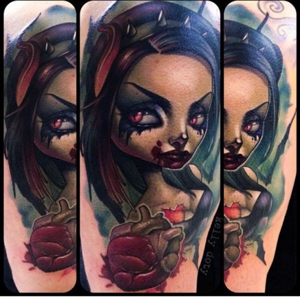 难以置信的彩色血腥吸血鬼与心脏纹身图案