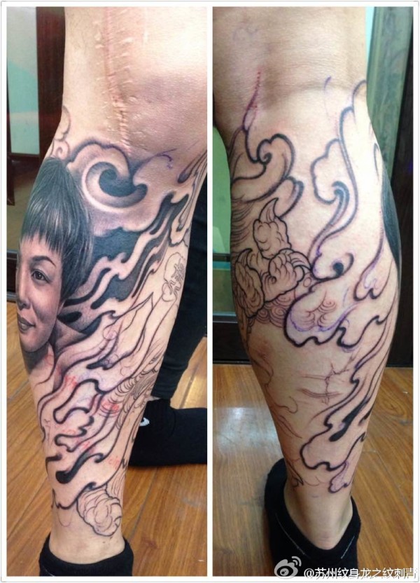 女生人物纹身图案 女生小腿上女生人物纹身图案