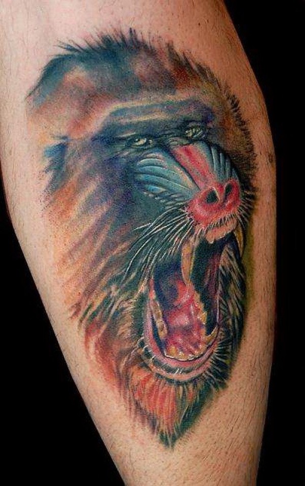 美丽的彩色写实狒狒头像纹身图案