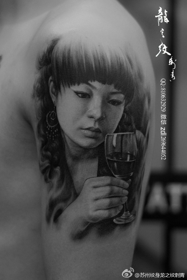 女性肩部肖像刺青_肖像纹身图案大全_纹身图吧