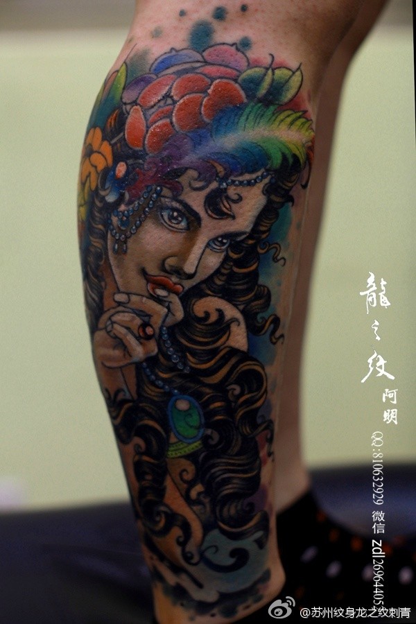 小腿艺妓纹身图案