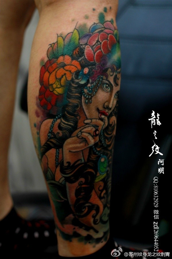传统花腿纹身--18张传统风格的大花腿纹身图案作品