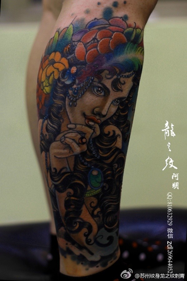 传统花腿纹身--18张传统风格的大花腿纹身图案作品