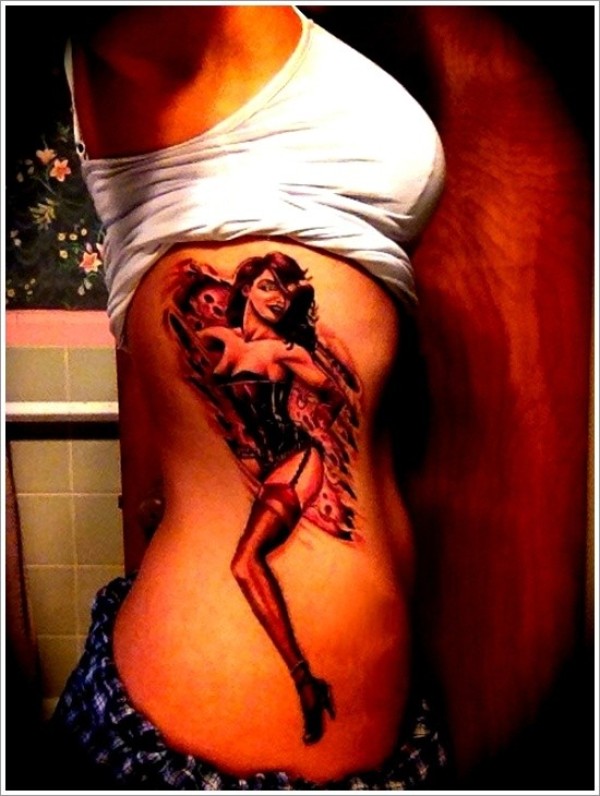 侧肋彩绘old school女子舞者纹身图案