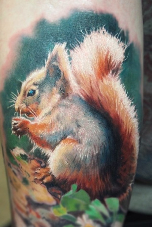手臂写实可爱的松鼠纹身图案