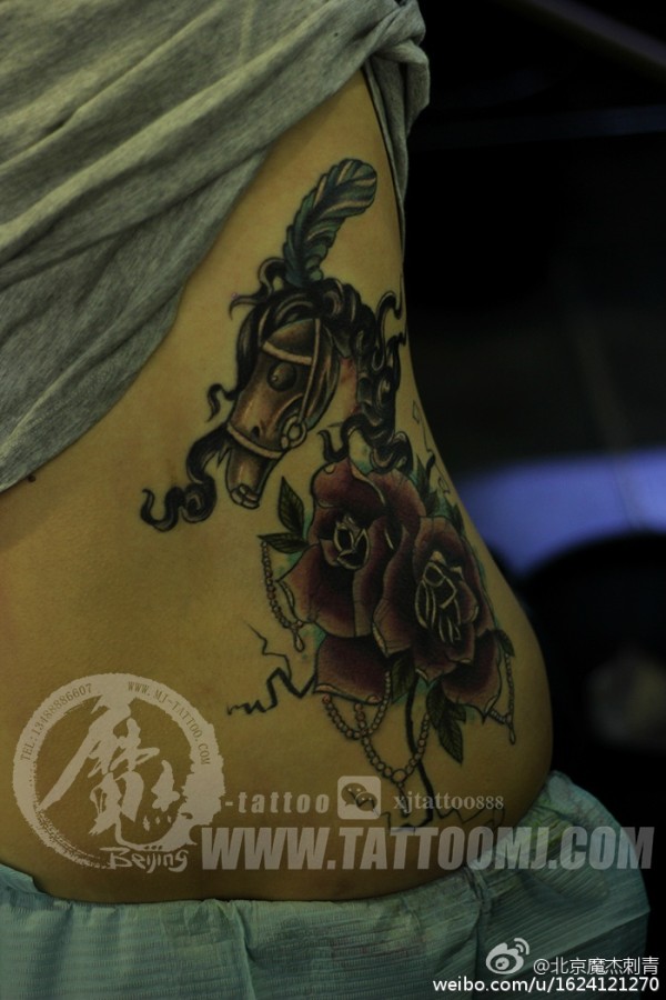 分享一款腰部时尚性感的蝶恋花纹身图案_腰部纹身图案大全_纹身图吧