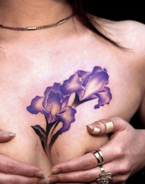 胸部美丽的鸢尾花彩色纹身图案