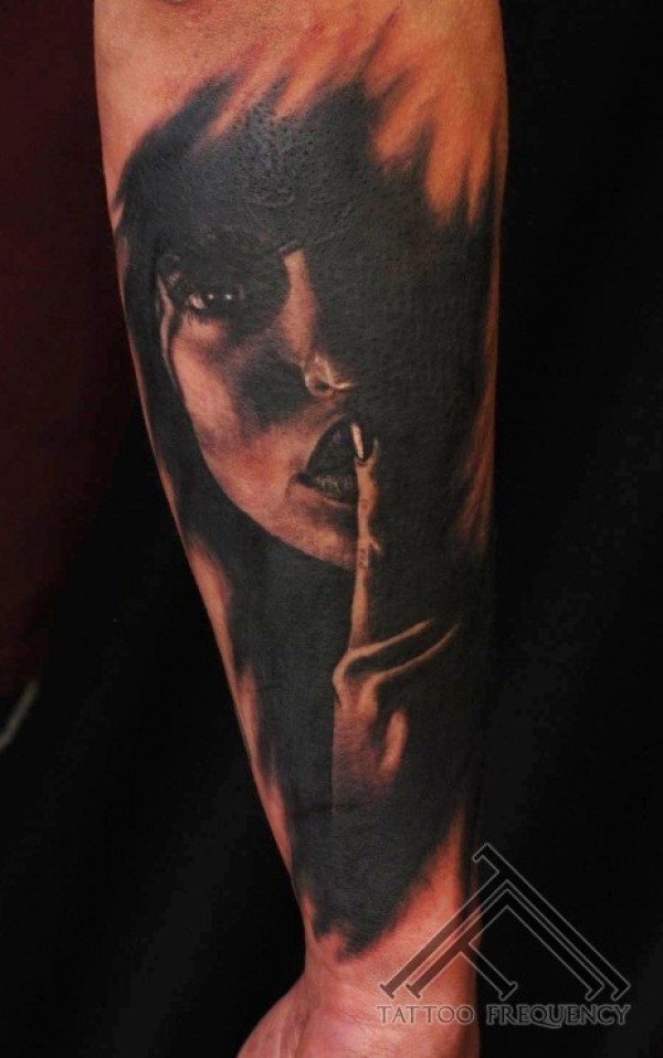 手臂可怕的黑暗女人脸纹身图案