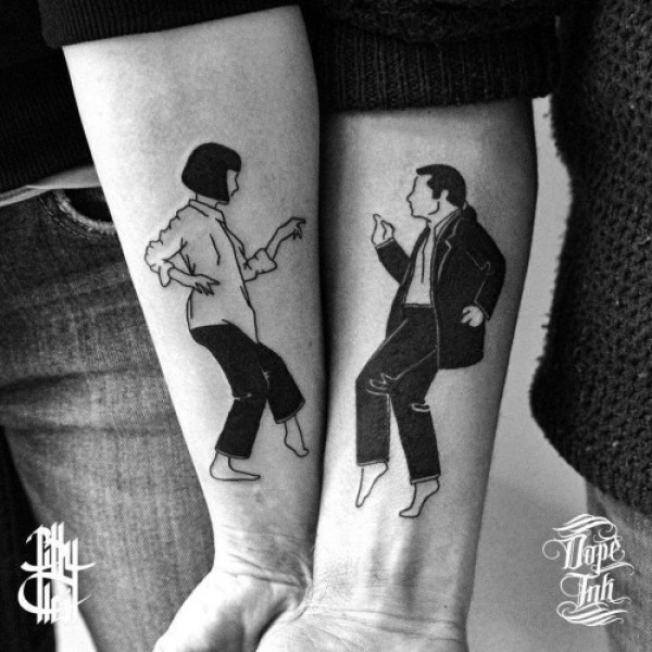 情侣手臂黑色跳舞男女纹身图案