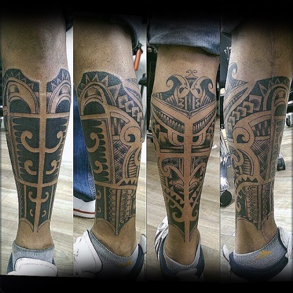 小腿黑色古代饰品纹身图案