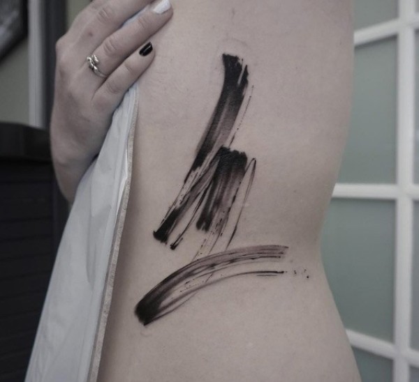 侧肋中等大小的黑色水墨有趣装饰纹身图案