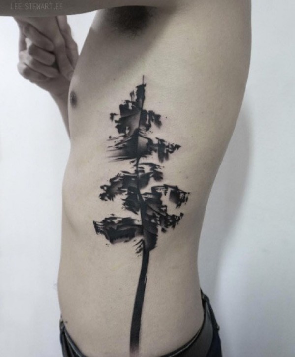 侧肋经典的黑色大树纹身图案